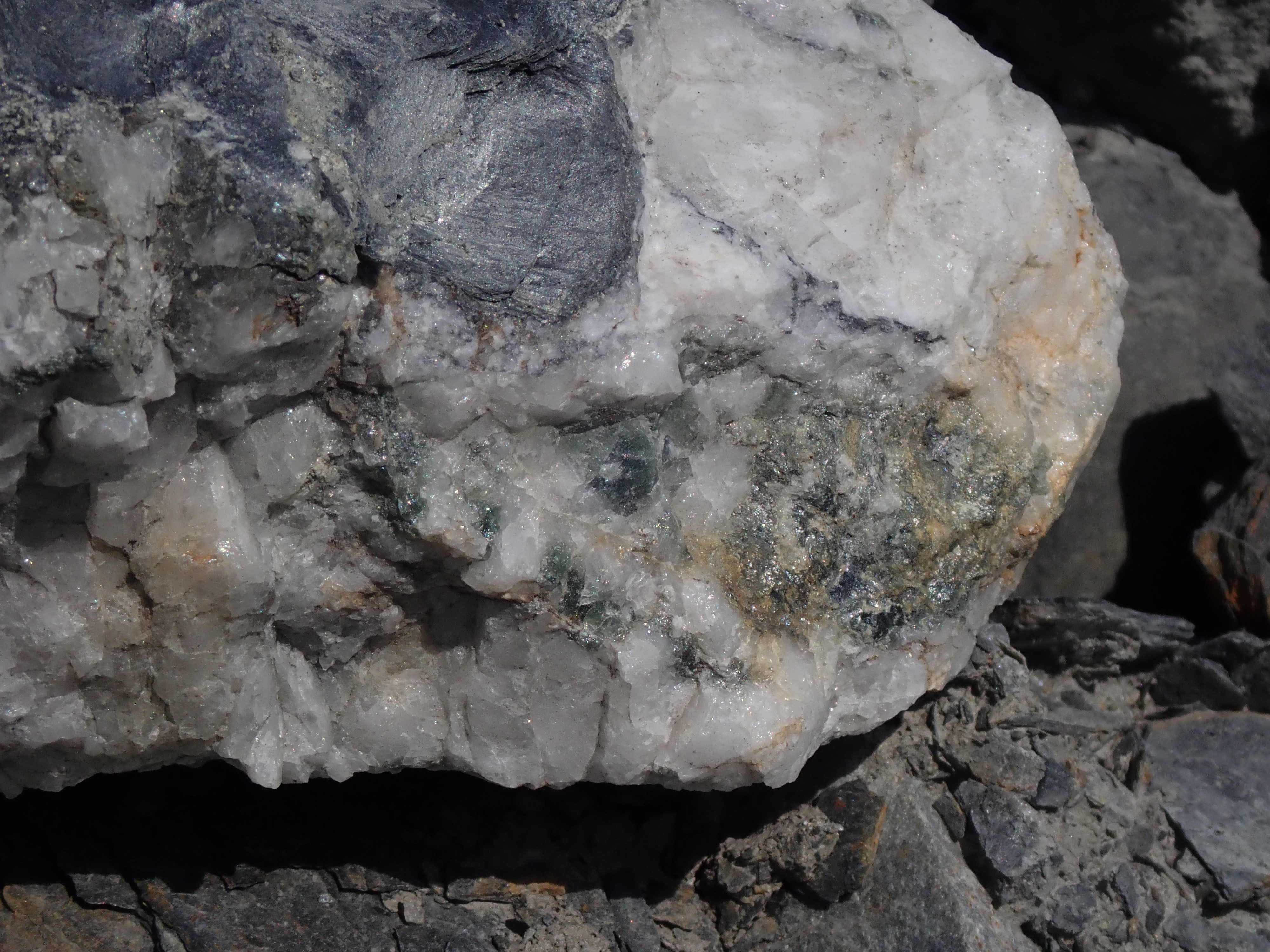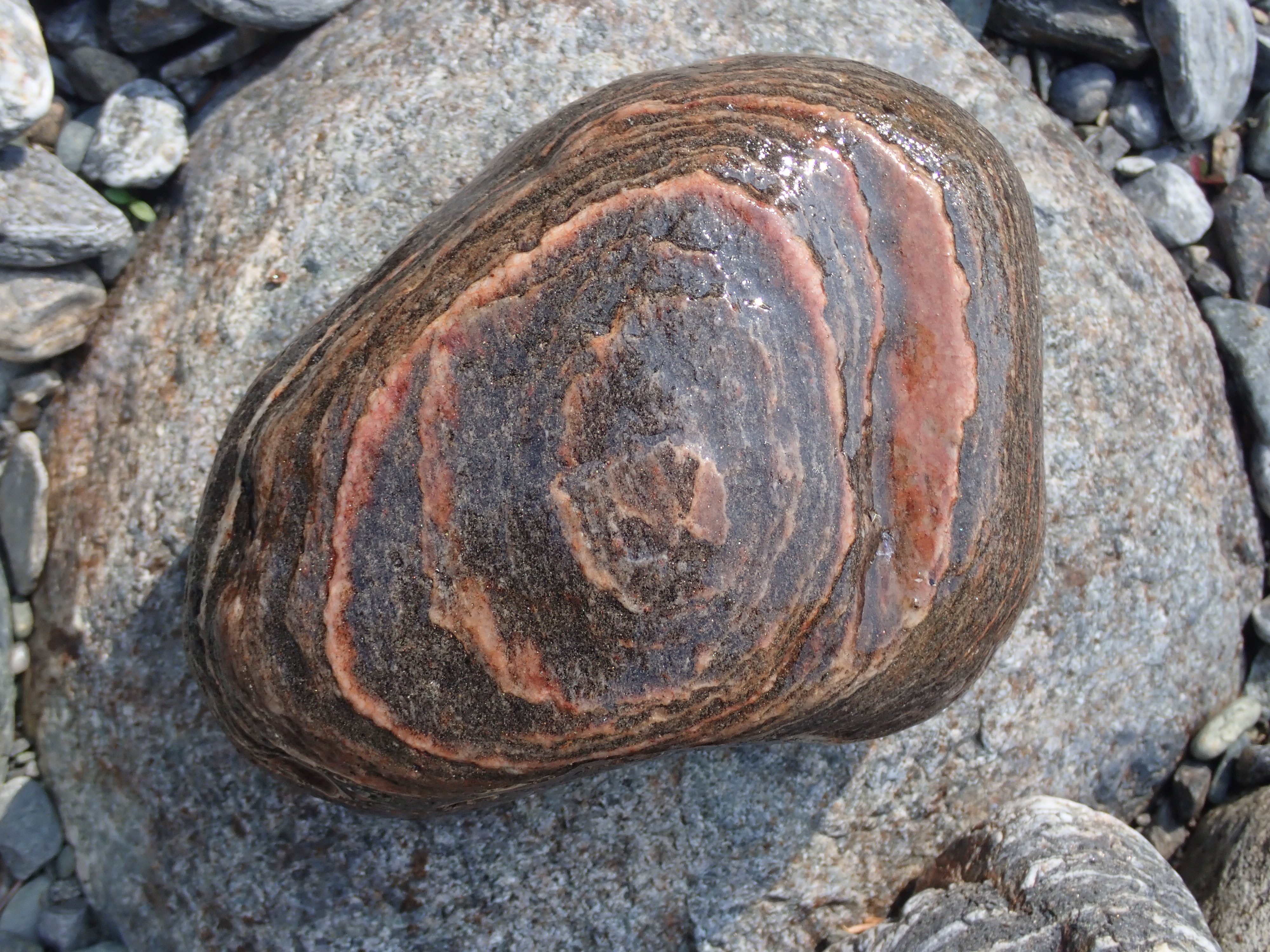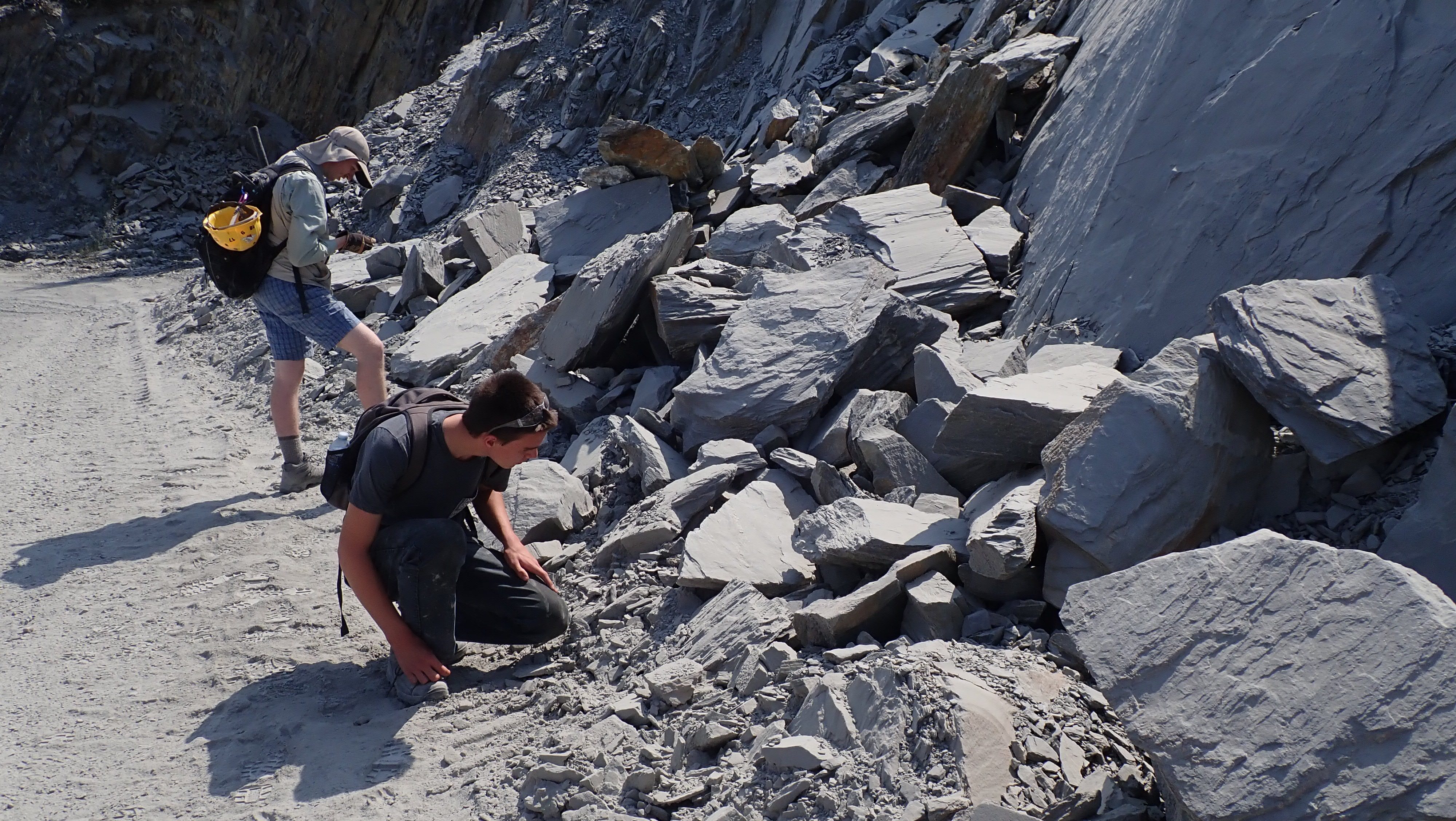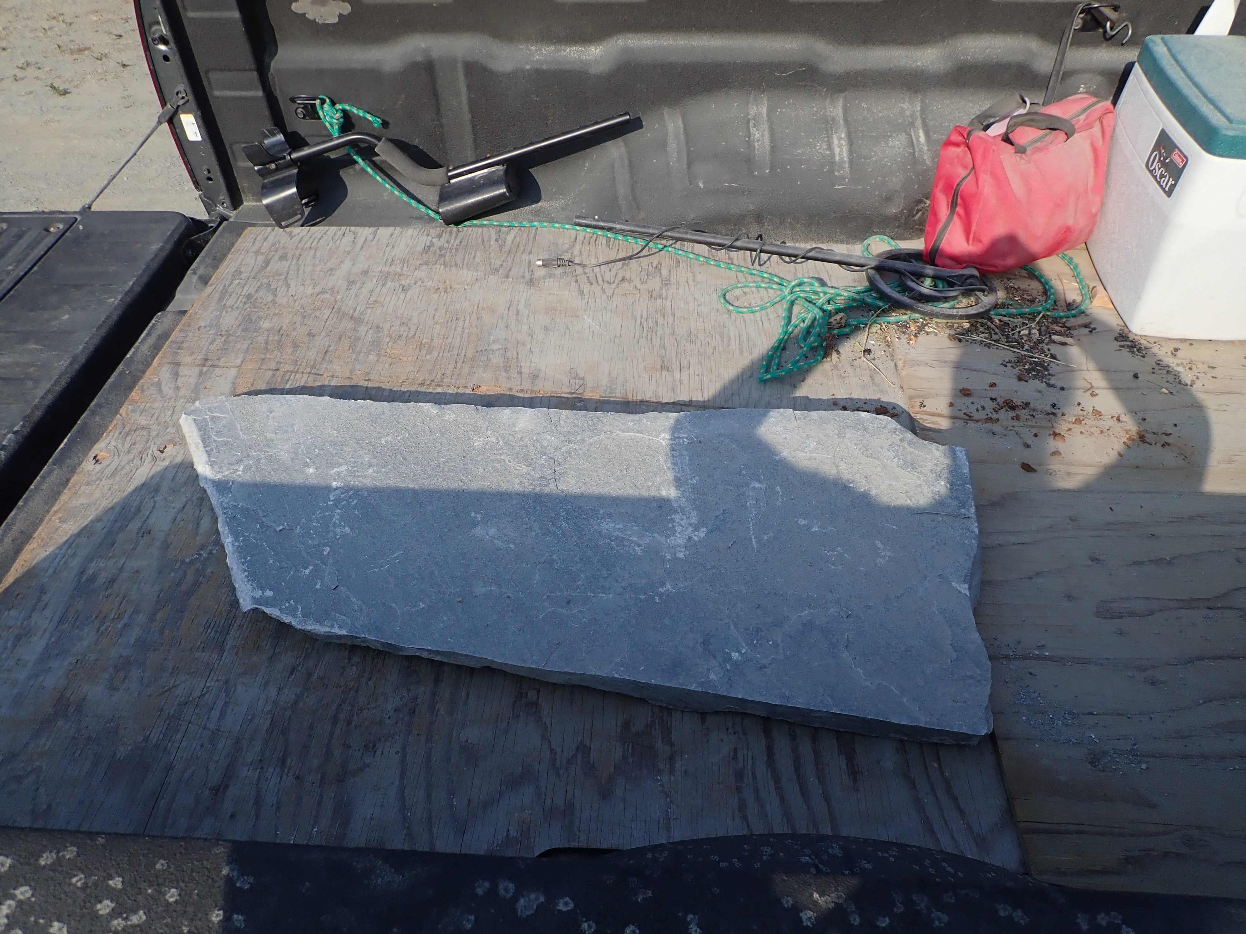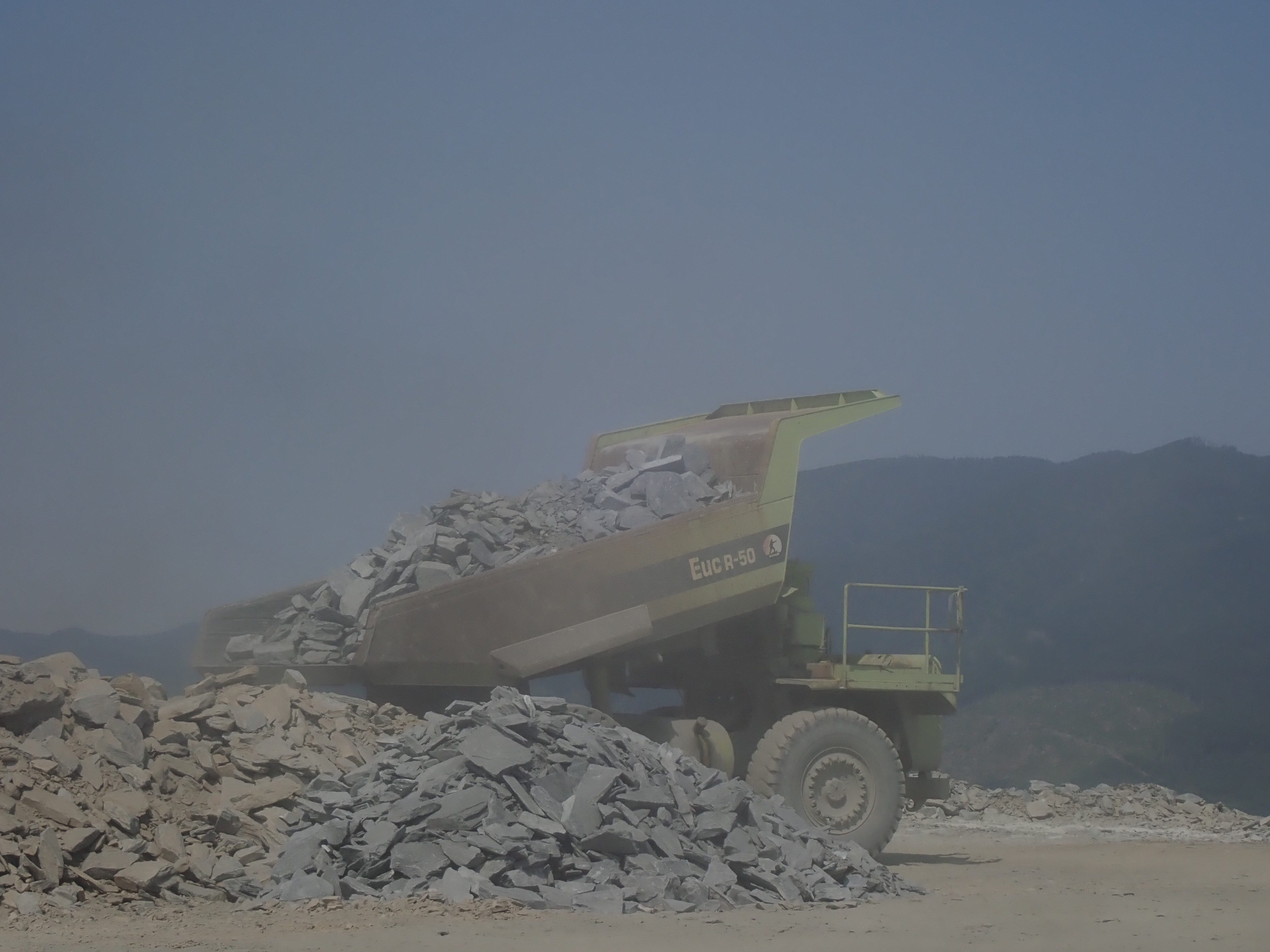 The K2 Quarry is located past Lizard lake on a challenging and extremely dusty logging road.  A convoy of around 12 high-clearance vehicles made the trip, loaded to the gunnels with all who wanted to attend.  We were met for the last segment by Matt Girard from the Nanaimo office of K2 Stone.  In the quarry we had an hour walk-and-talk on how K2 operates. We were allowed to take any sample of rock we could physically carry to our vehicles – which led to some team efforts.
