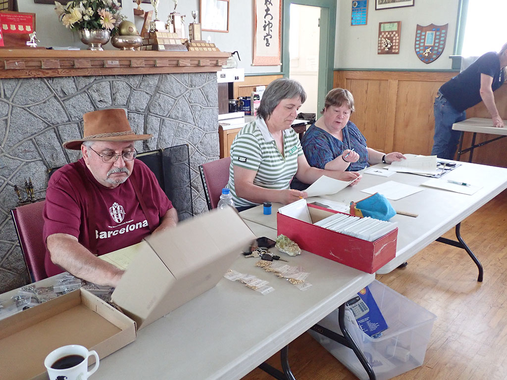 The Annual Club Auction was held last Monday. It was, as ever, very well attended. Any member can put a rock-related item up for sale: rocks, minerals, tools, books related to rocks. 15% of the sale price goes to the club. Check the video and the slide show below to get an idea of what was on offer.