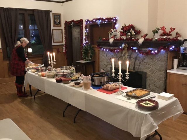 December 5 th , 2022. - The Club was decorated with fir boughs and colored metallic bows, and the seating