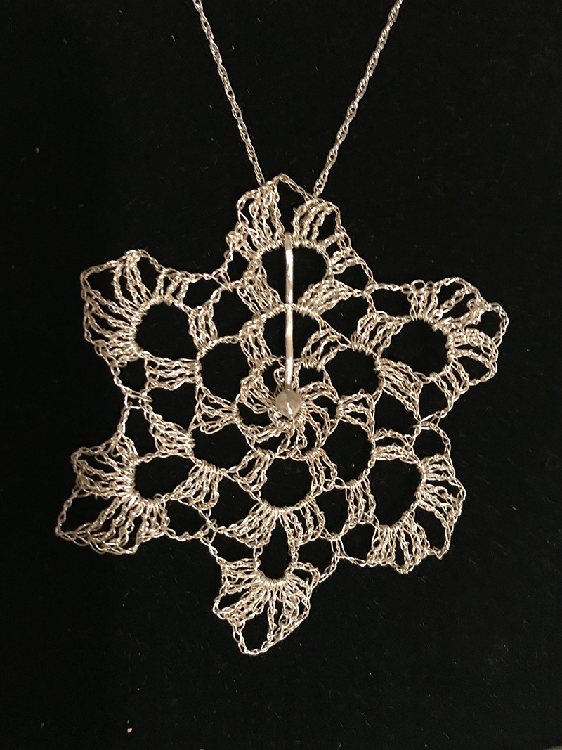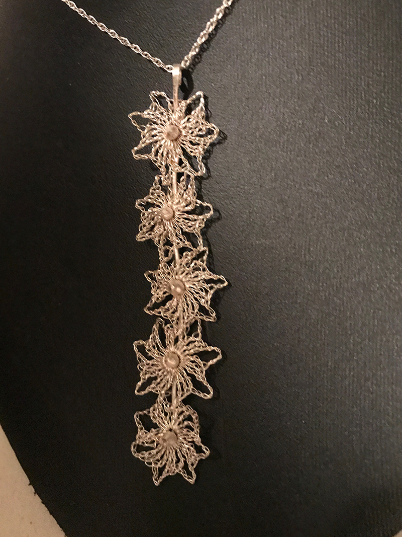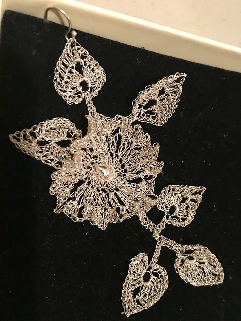 Twisted Fern’s Silver Lace Jewelry and Sculpture marries 19th century lacework traditions with the geometrical complexity of the natural world. Crocheted Silver is strong, yet light, and allows great scope for creativity and a wide range of design.