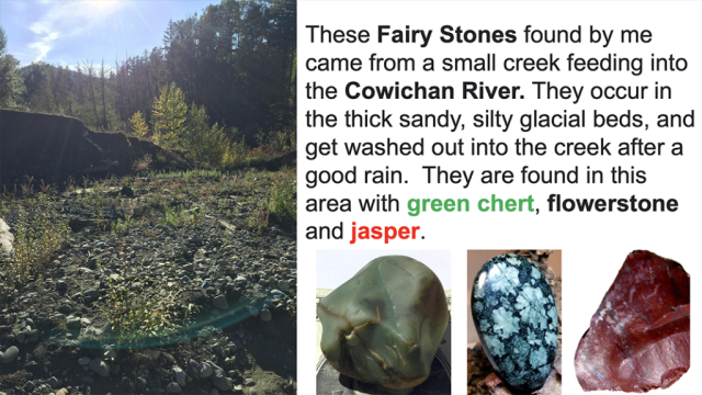 Barry Duncan gave an amusing short presentation on Fairy Stones of the Cowichan Valley. The slides he used in his presentation can be seen here.
