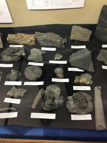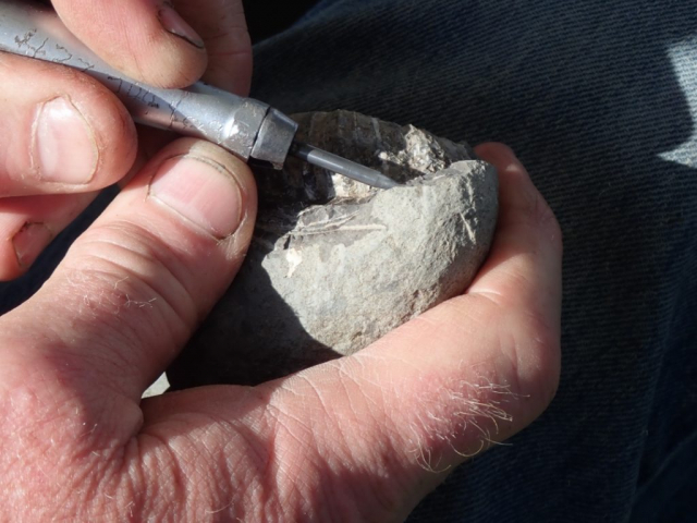 Russ Ball from the Courtney club explained how he uses an air scribe to clean out the matrix surrounding fossils to better expose the structure.