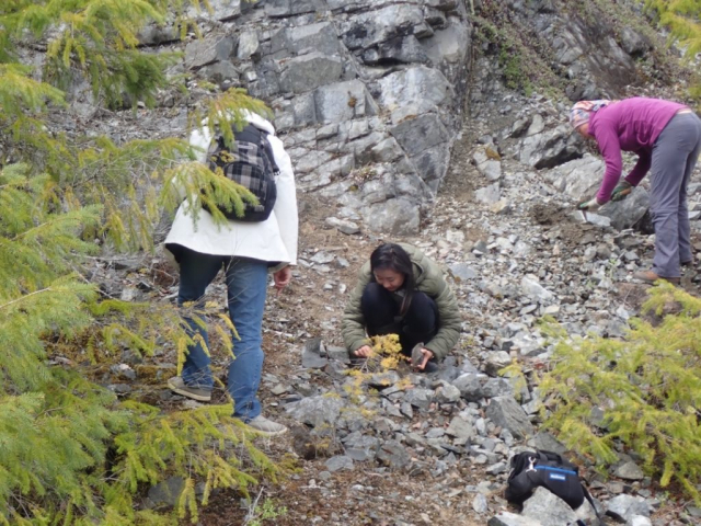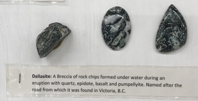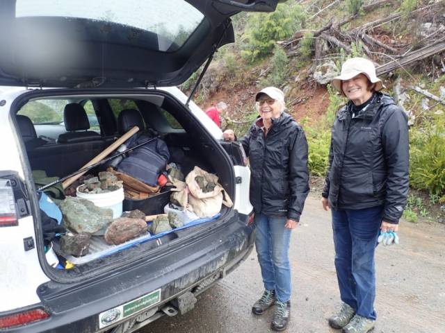 The trip to Mt Arrowsmith afforded the chance to see Dallasite in its original form as part of basalt pillow lava as well as red, green, blue(ish) and purple jaspers. Thanks go to Jim Jeffs (Parksville club) for leading the trip, providing insightful explanations and organizing the gates to be unlocked for access.
