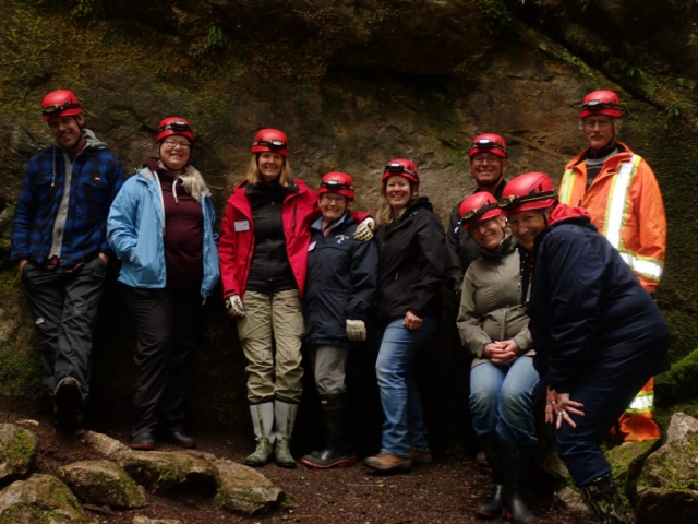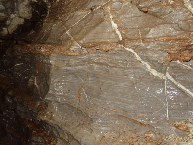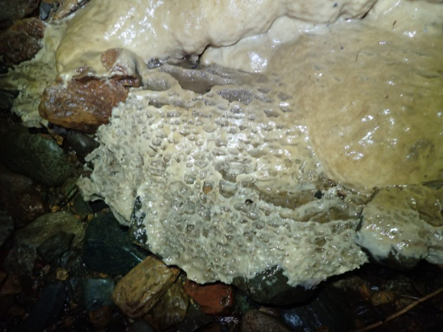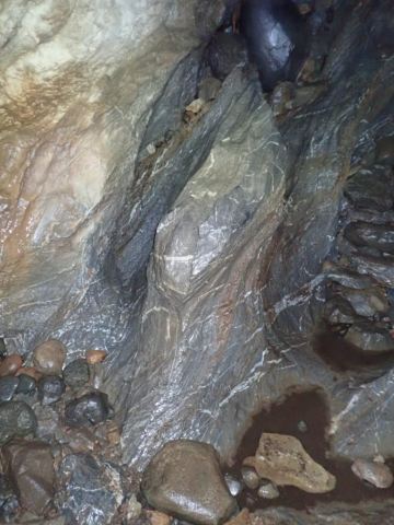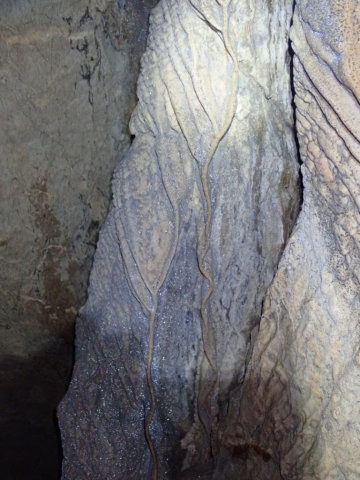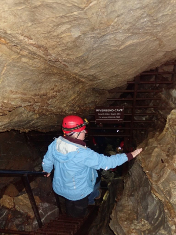 At the guide centre we were provided with helmets and headlamps. Our guide, Ryan, took us on a 20 minute walk uphill to the cave entrance. The walk is dotted with interpretive signs of the landscape. The entrance to Big Bend Cave is gated and locked. The floor of the cave is in its natural state as a river bed and requires some nimbleness to navigate.