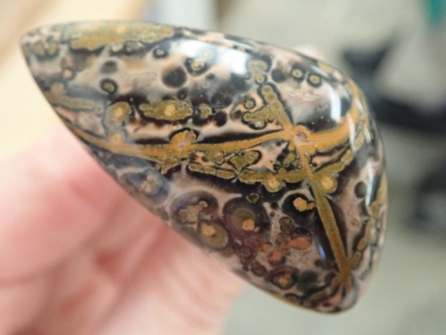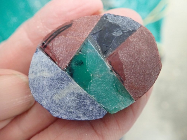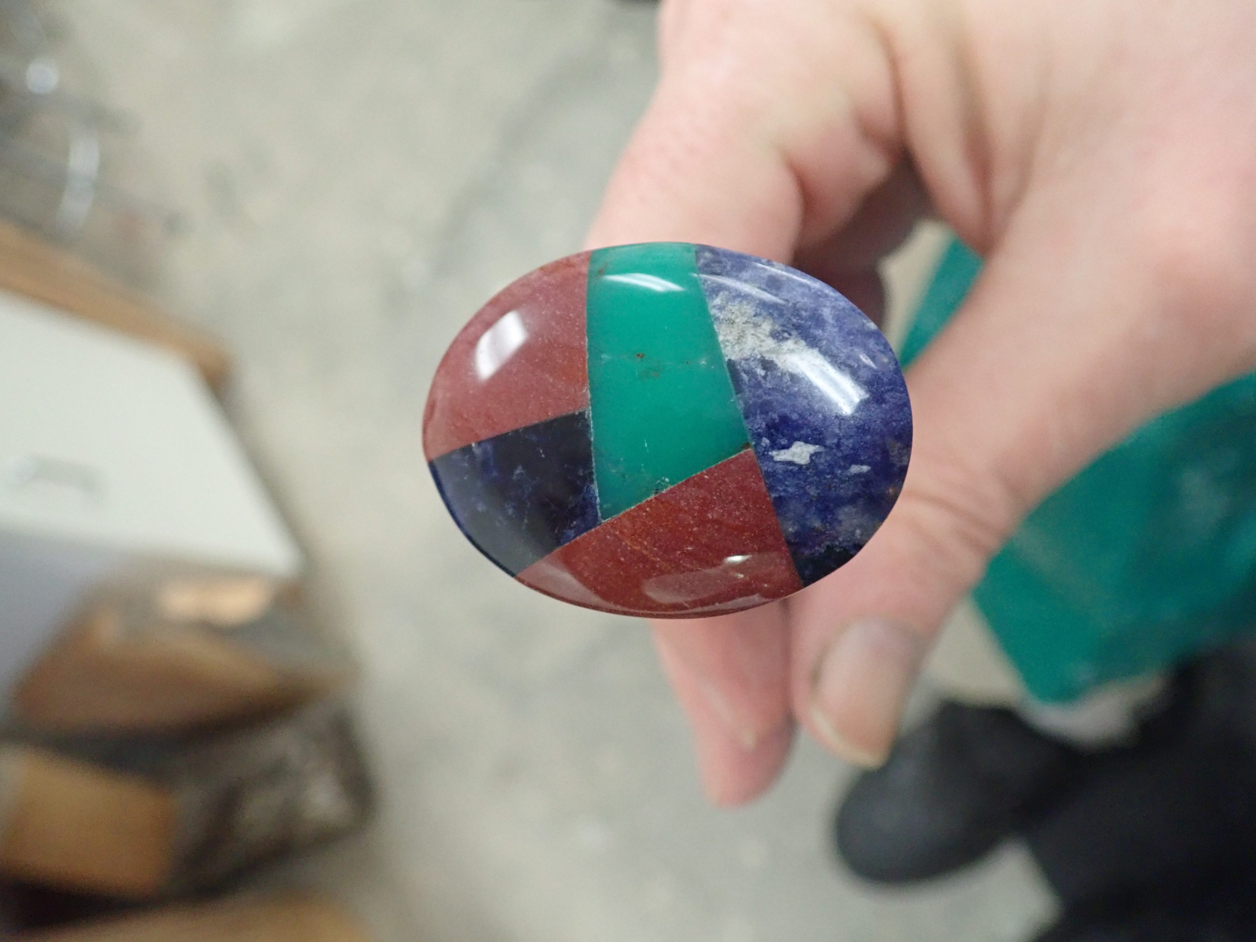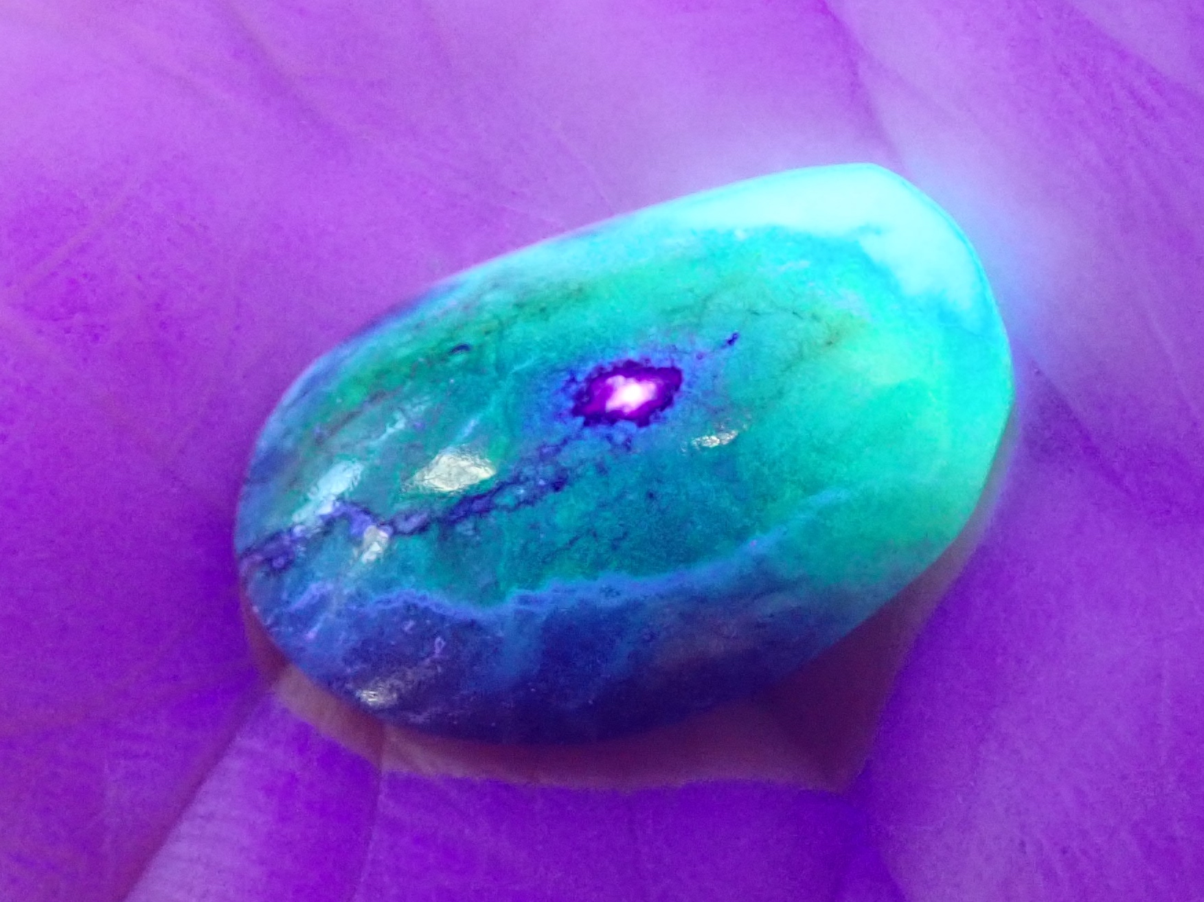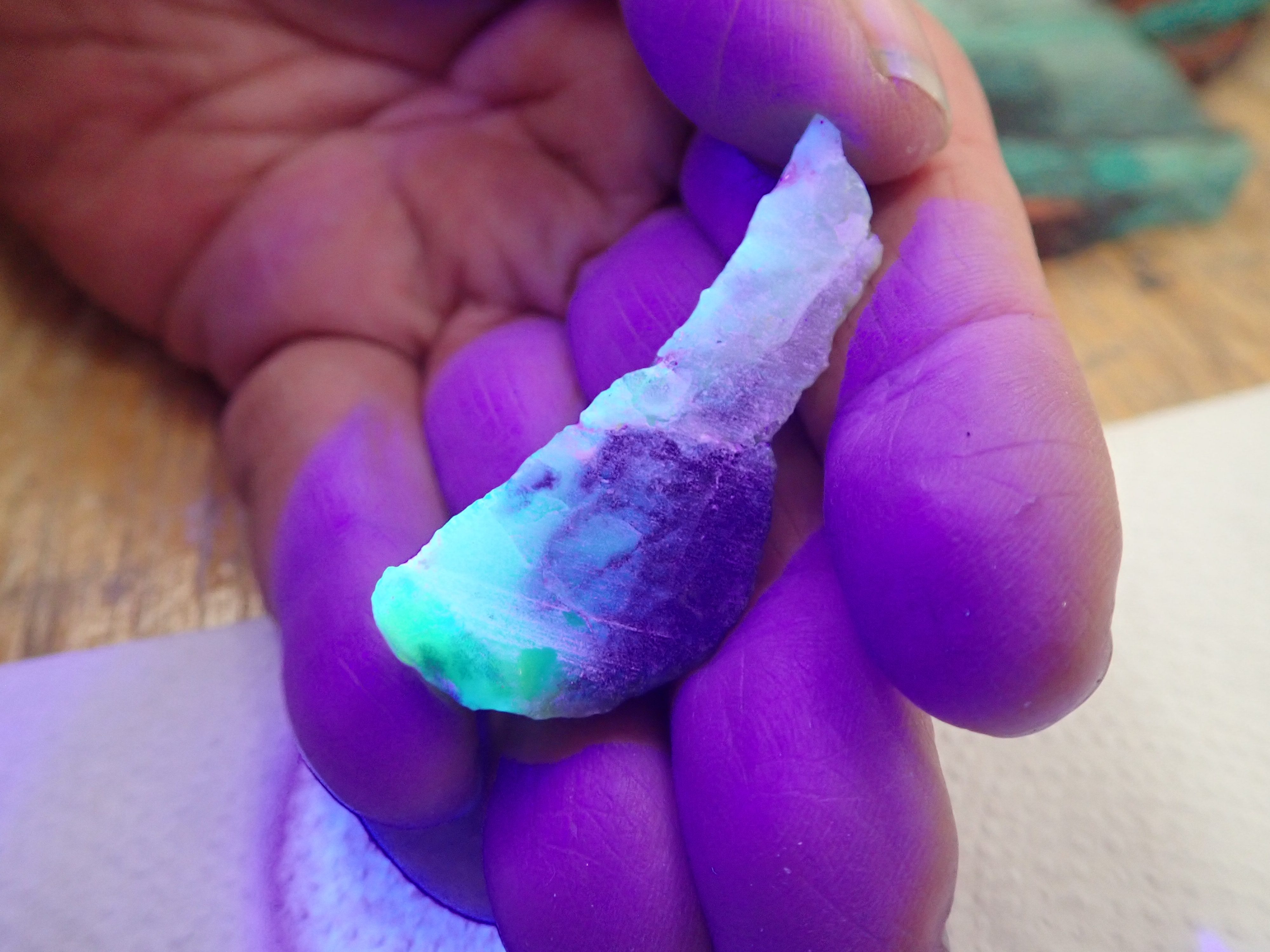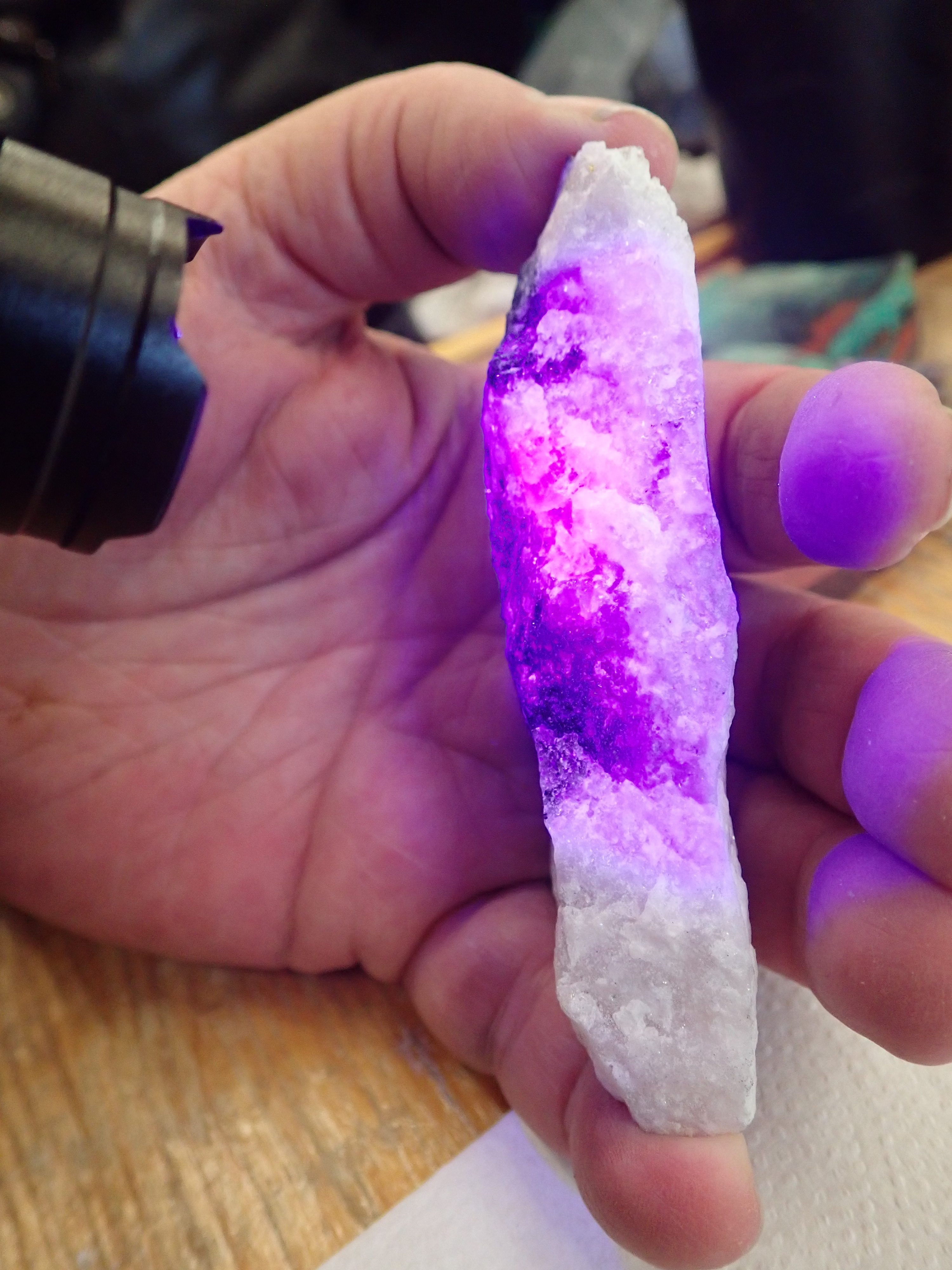 Vanessa is collecting stones that fluoresce under black light – and she conveniently has a flashlight for demonstration.
